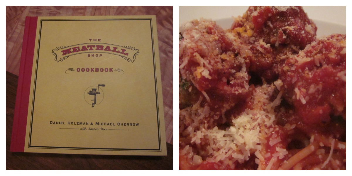 Z asked for a cookbook. Sort of. Ok, well, maybe he didn’t but he did say, ‘We could cook through this one.’ in reference to a cookbook we saw during a recent trip to Barnes and Noble. It is written by a couple of guys that started a kind of fast casual, come backoften meatball shop in New York. They wanted accessible and affordable food. So, all things being the same, I secretly ordered him a copy for his birthday. He is impossible to surprise and always knows his gifts with unnerving accuracy. He got some baking pans and a piece of Lego art from Etsy too. He didn’t guess any of them this year. The book is The Meatball Shop Cookbook and is chock full of meatballs of every flavor but only one shape. Tonight we tried the very first one, the basic meatball in the basic sauce. I oven roasted the balls and then smothered them in sauce to finish and served over spaghetti noodles finished in the sauce. A sprinkle of parmesan and a small green salad with some bright vinaigrette on the side. The meatballs were tender and moist (yeah, I said moist) and like their name, basic. I followed the recipe and would add more red pepper flakes if I made them again. I’m looking forward to the varieties and trying not to be scared. Thai inspired, buffalo chicken or goat anyone?