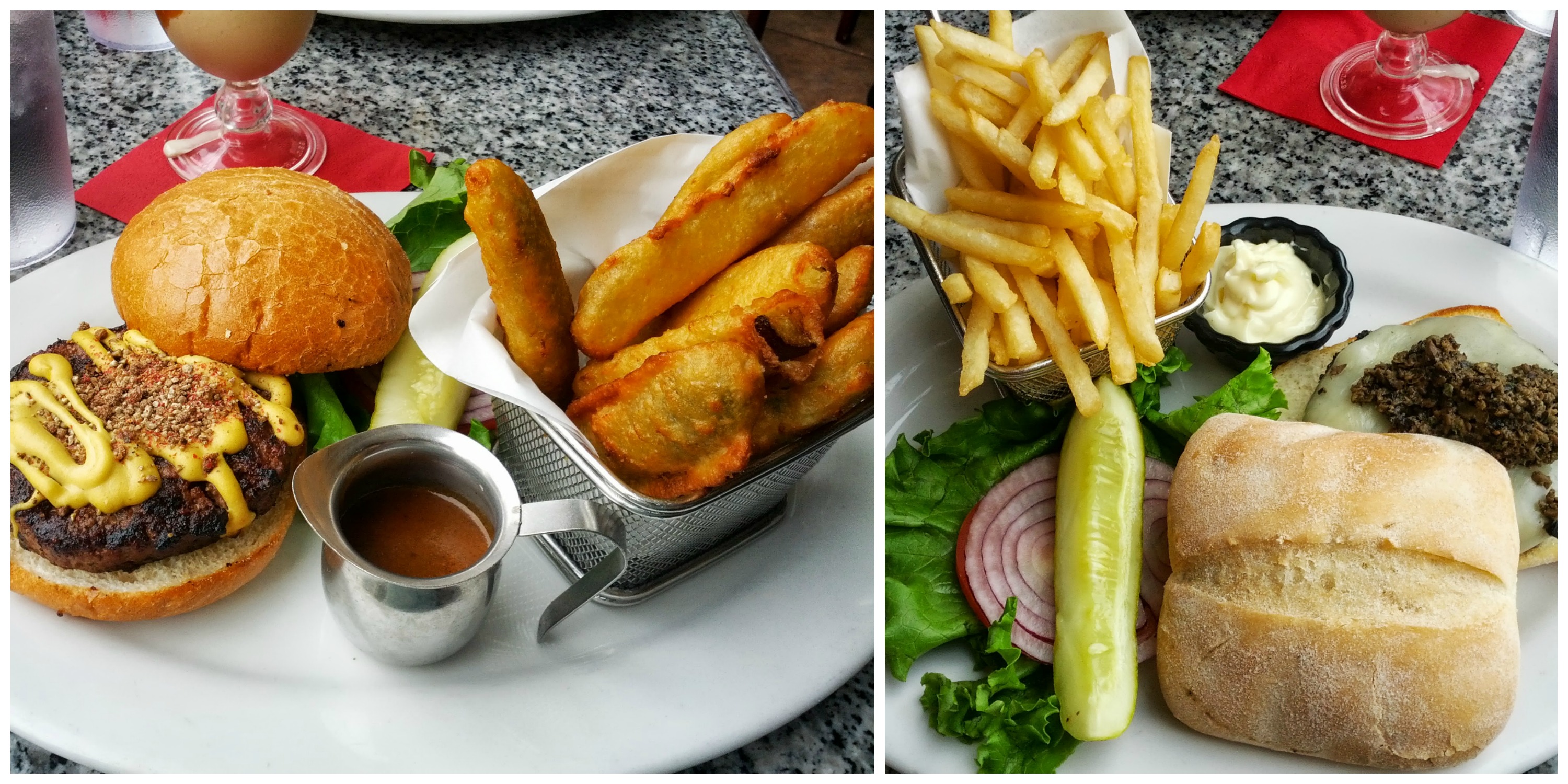 well, I can say that Hubert Keller wasn’t on my radar until he made macaroni & cheese in a dorm room on Top Chef Masters and used the shower to rinse the noodles. I don’t really rinse noodles but I guess that’s how he rolls and he won so who am I to judge. Either way, we were able to walk over to one of his restaurants, Burger Bar, while we were in San Francisco and have a quantifiable gourmet burger. Before I get into that let me tell you about the view. Six stories above Union Square we sat against the huge glass windows looking out over the public space. It was enough to give a girl a little vertigo. After we ordered we sat and watched the people meet and greet each other in the park, sitting on the steps, sitting at the coffee terraces, coming and going. The view was really amazing and made the few extra dollars tacked on to the burger. I ordered the Black Jack Burger which had monterey jack cheese and olive tapenade with Angus beef on a ciabatta roll. I wouldn’t have particularly expected it to be tasty as I couldn’t foresee how the mildness of the cheese could match the strength of the olive spread but it was really delicious with a smear of mayo on the roll and I devoured it! Z had a peppercorn burger which was crusted with crushed pepper and had a housemade Dijon mustard and creamy peppercorn sauce. The real stand out though, were the deep fried jalapeno pickles that he upgraded his fries to. Great spears of spicy pickles deep fried in the lightest crunchy breading. Seriously, I nabbed way more than my ‘fair share.’ They were so delicious I was inspired to try this at home sometime this week and shamefully bought one bottle of beer at the grocery store. You know how stupid I felt buying one bottle of beer? Oh well, it’s all in the name of adventure! I can’t wait to try. We made our own spicy habanero pickles so watch for that!