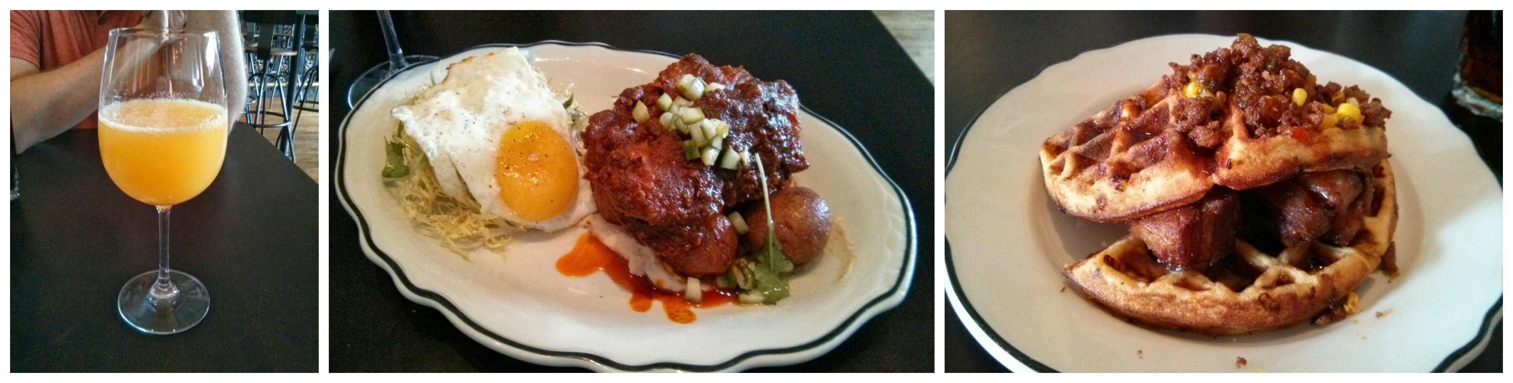 Today, church feels different, in ways I can’t put my finger on.  But a big one is how we leave and what we do with our Sunday afternoon.  We hustle out after the service to run errands, to Target, for a hair cut, to the vegetable stand.  Somewhere in the middle today I said, ‘I just want something really good to eat-something that someone took care to make.’ So Z offered up Cask & Larder.  I love their food-the Southern-ness of it all, the finely crafted and careful plates of interesting flavors.  So many tastes, textures and ideas all rolled up in one bite.  I think there is some amount of sadness and joy in South that comes forward in this cooking.  I can’t put my finger on it.  I had Nashville Hot Chicken-sweet and spicy sitting on top of pureed bread and boiled new potatoes with a heaving egg on some lightly dressed frisee.  A tiny dice of dill pickles on the chicken showing an eye for detail.  Z had a hushpuppy corn waffle with charred corn relish and melting pork belly.  It all speaks of what is here, using what they have, crafting the food into more than the sum of it’s parts.  This dinner was delicious but also a little bit sad.  I miss those days of visiting and eating with friends and families and joining new people in their homes-seeing their turf and sharing a meal.