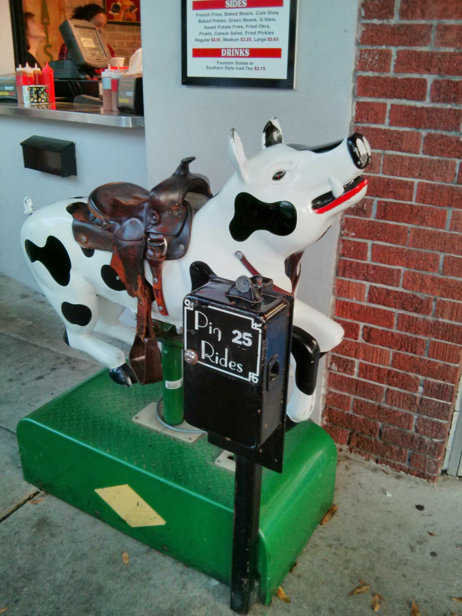 So, back to this. On Friday night Karin & I had been texting back and forth with what we could do and Z suggested Harry & Larry’s BBQ whose deep fried pickles Karin has been praising for months. Not their BBQ, but their pickles. Alright, a 40 minute drive later to what must be the other end of the state we hit Winter Garden. It’s kind of more old town central Florida. A walking community where people have lived there a while and are happy with their comfortable community. Harry & Larry’s is a tiny windowed storefront with a deep hallway of bright red booths. It looks kinda old but has only been around for five or so years While we were perusing the menu board outside I asked someone sitting outside with a big baskety pile of dinner what he was having, ‘Man Salad’ he said. So, I happily ordered that only slightly less ‘Manly’. A big old basket of fries (instead of lettuce) usually covered in beans (I skipped those) and then smothered in cheese and brisket just waiting to be sauced up by one of the three options, sweet, hot or XXX. I had the hot and had to switch to the sweet which isn’t my usual but I liked it a lot. Z had the XXX on his pulled pork sandwich and I really can’t imagine how that felt going down. A man salad. Awesome. It was fun to eat. No way I could finish. The meat was alright. I’m not ashamed to say i probably like 4Rivers better but the pickles. Karin’s right about them. They are so great. Dill pickle rounds dipped in some kind of cornmeally breading and deep fried served with some pinkish sort of sauce thing. They were so good. I was sharing or could have easily forked my way through there. It’s a fun local place filled with friendly staff and the prices are very fair. We shut the place down talking -although Winter Garden pulls in the sidewalks pretty early. You should go, even if just for the pickles and conversation.